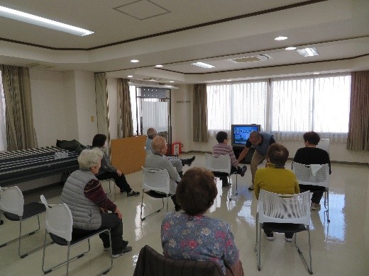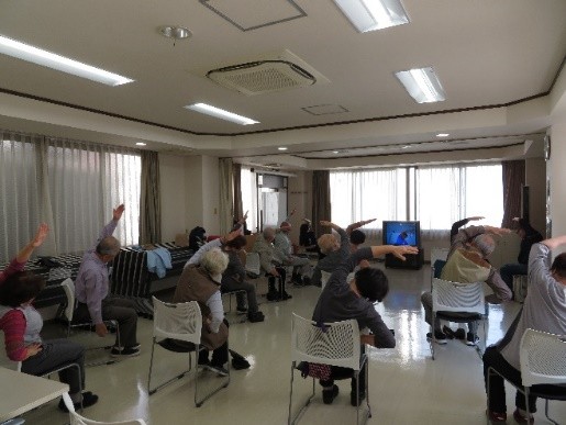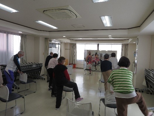 | イベント内容紹介 | パーソナルジムの先生に来ていただき、健康体操をしています。 |