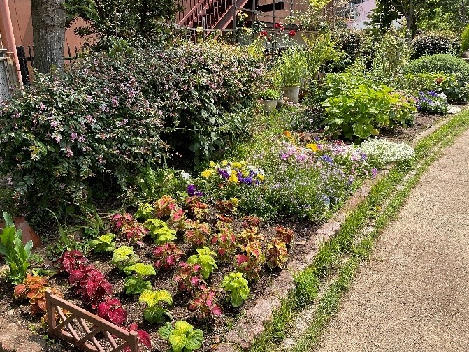 ①ふれあい花壇:毎日水やり年数回花壇の植替え