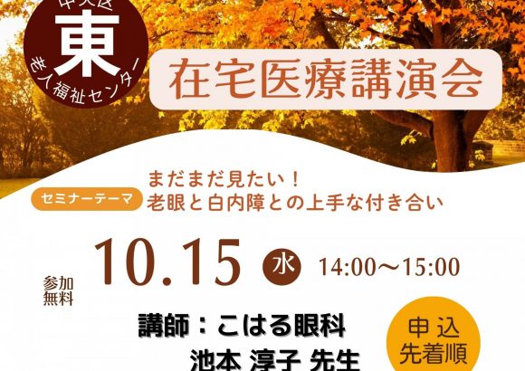 場所:中央区東老人福祉センター内容:「まだまだ見たい!老眼と白内障との上手な付き合い」講師:こはる眼科 池本 淳子 先生定員:40名(要申込・先着順)...
