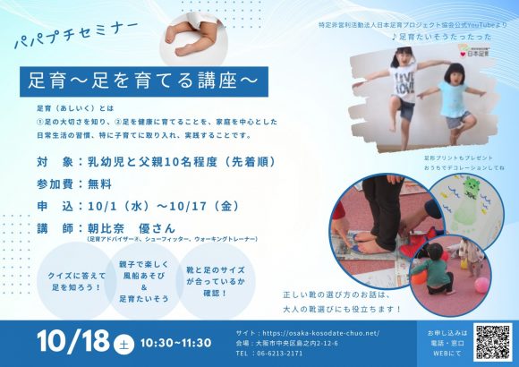 意外と知らない子どもの足のこと👣足育アドバイザーとクイズや風船で遊びながら、お子さんの大切な足を元気に育てるノウハウをお伝えします。足のサイズと靴のサイズが合っているか気になる方も多いですよね。ぜひ、解決しにお越しください!講座終了時には、足形スタンプもプレゼント。おうちでママも...