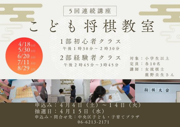 2026.04.18R8こども将棋教室4月~8月までの5回連続講座です。5回全日程 4/18、5/30、6/20、7/11、8/29(土)【初心者クラス】13:30~14:30はじめて将棋をする、久しぶりなのでもう一度初心者クラスを受けてみたいという小学生以上のクラスです。駒の名前や動かし方からじっくり学びま...続きを読む