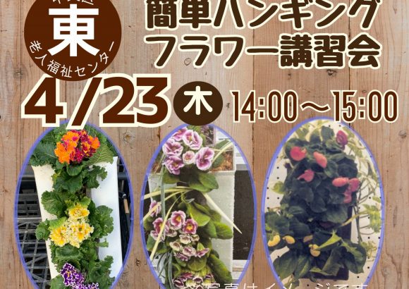 内 容:緑化ボランティアの方による指導により季節のハンギングフラワーを作る定 員:20名(要申込・抽選)参 加 料:1500円申込締切:4月16日(木)※4月17日(金)午後1時以降にLINE・窓口にて当選者の発表を行います。...