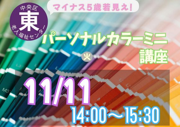 内 容:個別カラー診断定 員:18名(要申込・抽選)参加費:200円申込締切日:11月4日(火)※11月5日(火)午後1時以降にLINE・窓口にて当選者の発表を行います。...