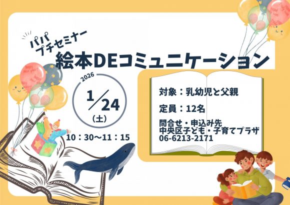 隣接する大阪市立島之内図書館のボランティアグループ【絵本の会島之内】の皆さんに来ていただきます。小さな絵本から大型絵本まで、いろいろな絵本が登場します。絵本の合間には、手遊びも☆何が登場するかは、来てからのお楽しみ。みんなが知っているもの・知らないもの、新しい発見に大人も子どももワクワク...